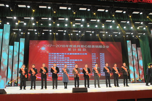 在本次晚會(huì)上,江蘇中能集團(tuán)捐贈(zèng)善款50萬(wàn)元,2017-2018年度累計(jì)捐款70萬(wàn)元,并連續(xù)九年為邳州的慈善事業(yè)貢獻(xiàn)綿薄之力。